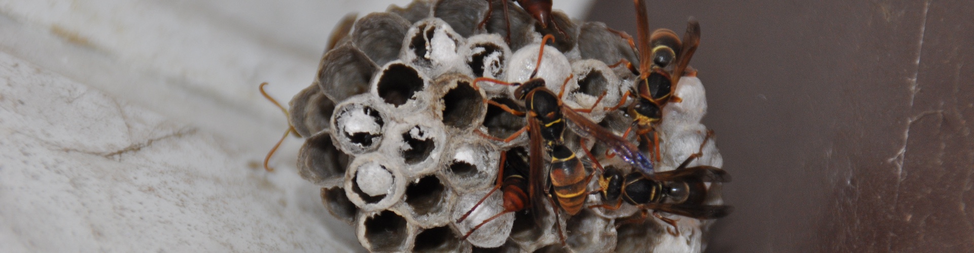 There are several species of native of Australian wasp. Most of native species build small nests of up to a few hundred individuals. These native wasps typically build their nests in sheltered areas around buildings (e.g. under eaves), on fencing and out-buildings, or under large leaves or branches. Our wasp treatment focuses on the nests on the buildings and on plants near the building and areas of human activity.